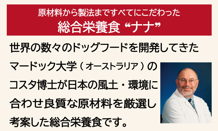 「ナナ」は原材料から製法まで、すべてにこだわった総合栄養食です。